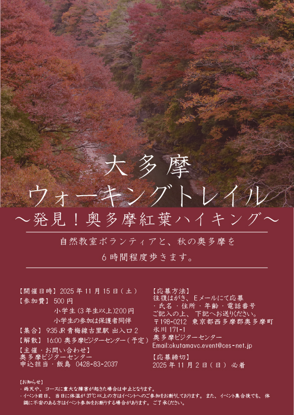 【自然教室】大多摩ウォーキングトレイル~発見!奥多摩紅葉ハイキング~