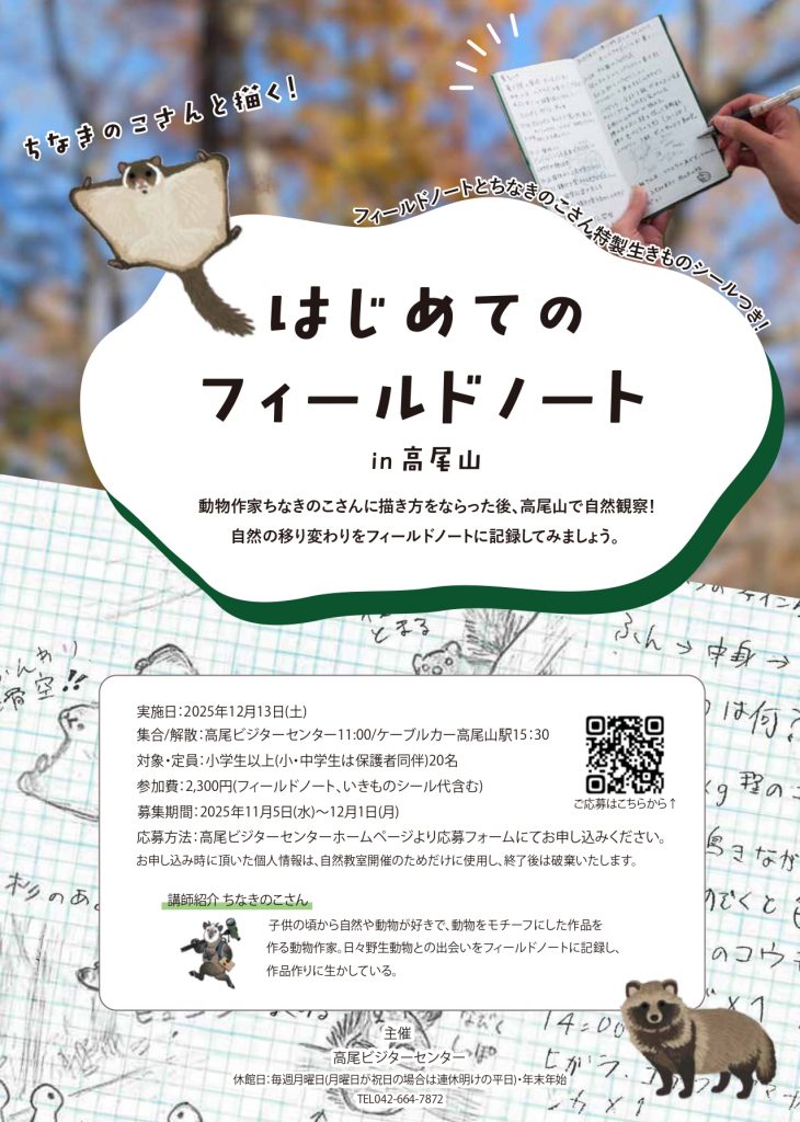 2025年12月13日(土)【自然教室】夜の高尾山でムササビ探しちなきのこさんと描く!はじめてのフィールドノートin高尾山
