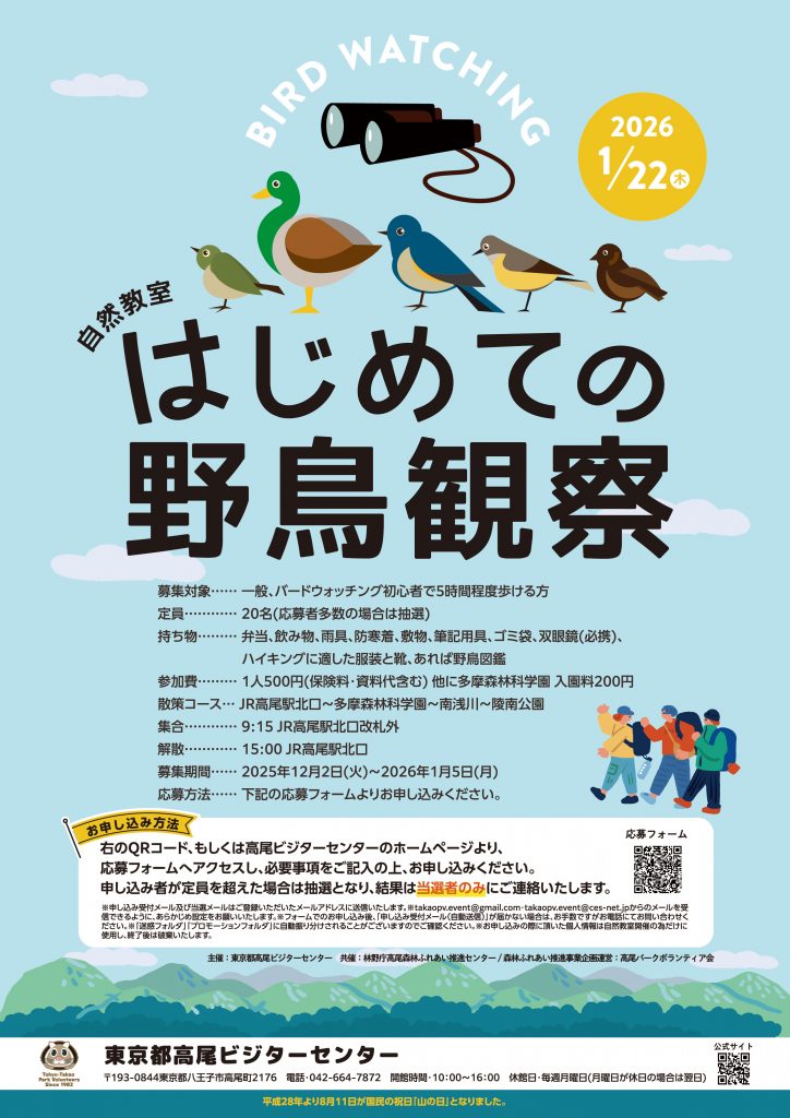 2026年1月22日(木)【自然教室】はじめての野鳥かんさつ